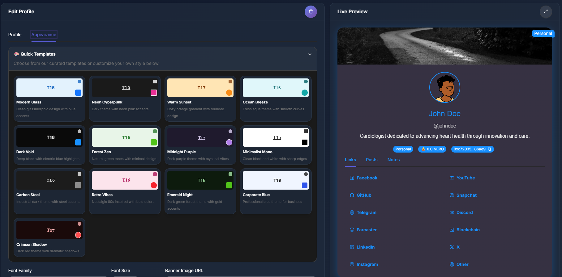 Add your social links, bio, and customize your profile appearance with themes and colors